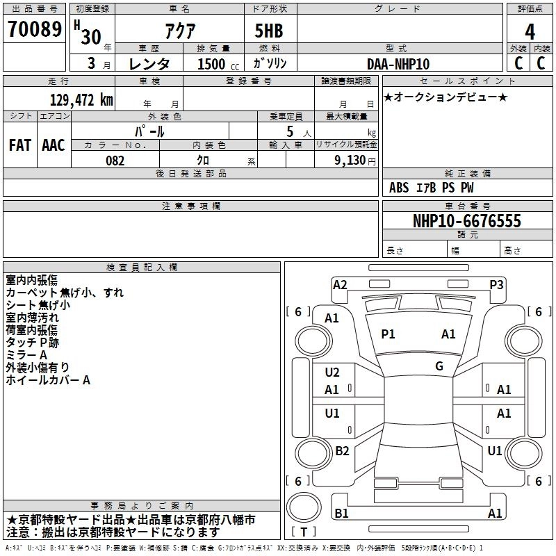 TOYOTA AQUA 2018 г., лот № 70089
