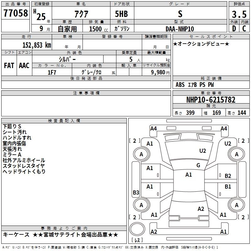 TOYOTA AQUA 2013 г., лот № 77058