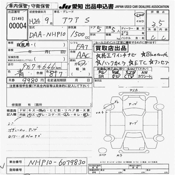TOYOTA AQUA 2012 г., лот № 4