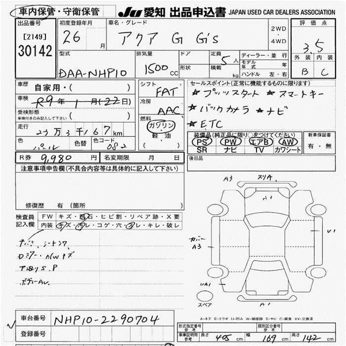 TOYOTA AQUA 2014 г., лот № 30142