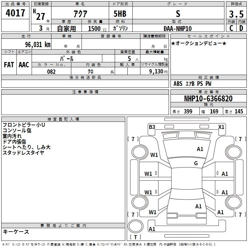TOYOTA AQUA 2015 г., лот № 4017