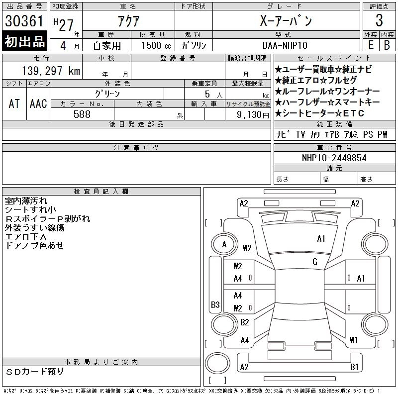 TOYOTA AQUA 2015 г., лот № 30361