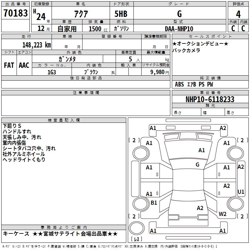 TOYOTA AQUA 2012 г., лот № 70183