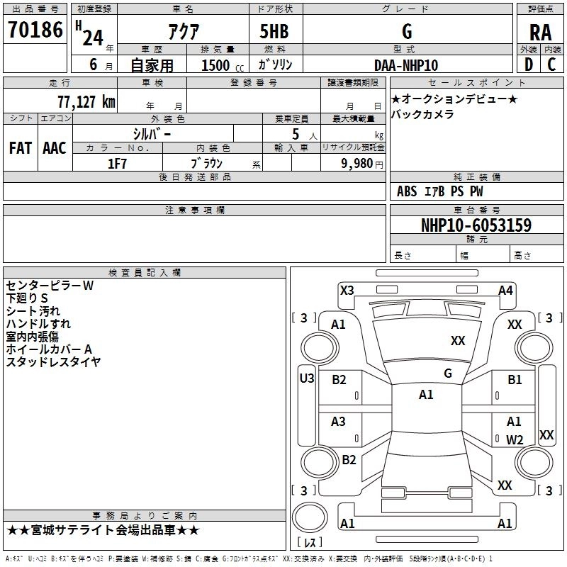 TOYOTA AQUA 2012 г., лот № 70186
