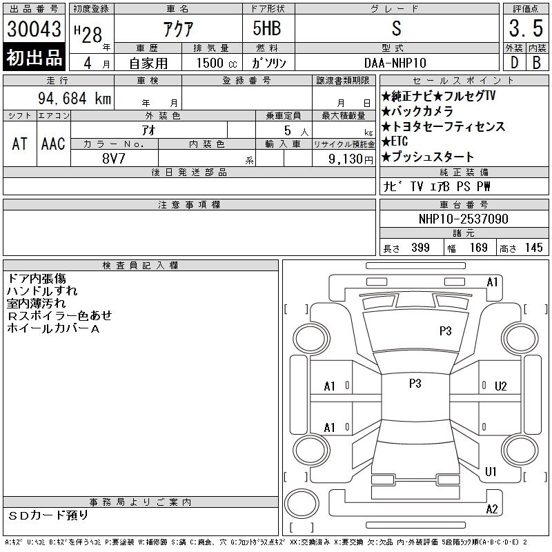 Статус выставлен на аукцион Лот 30043 Аукцион CAA Chubu Дата аукциона 11.03.2026