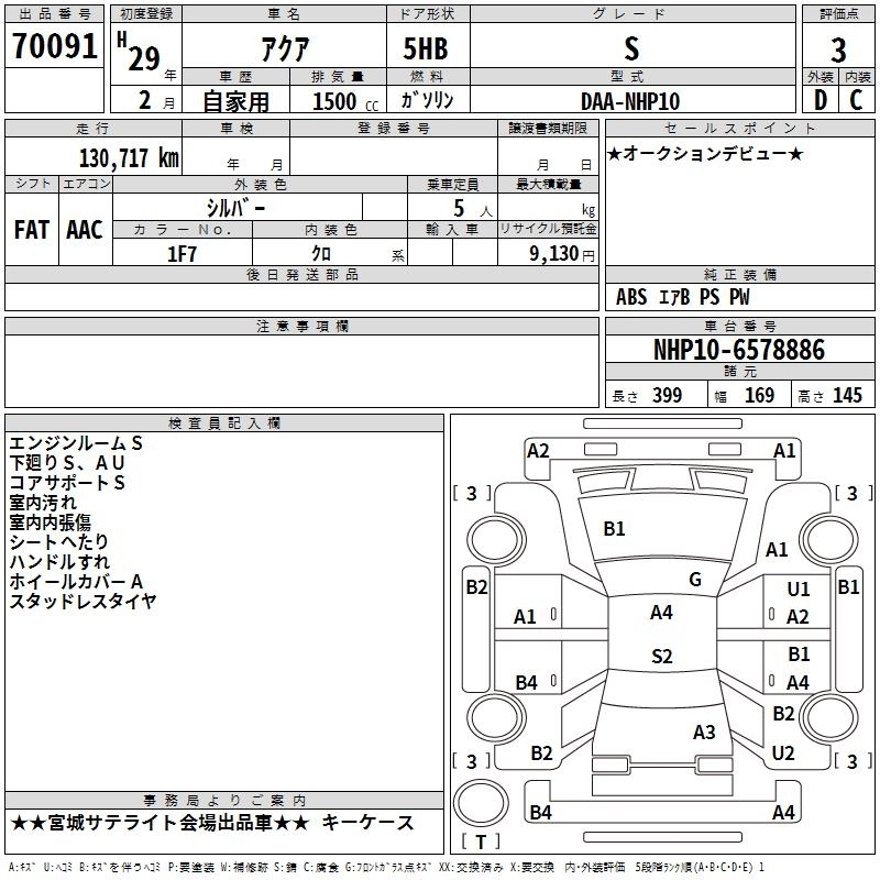 TOYOTA AQUA 2017 г., лот № 70091
