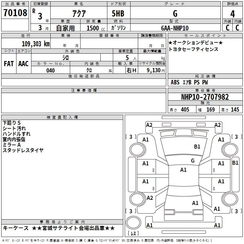 TOYOTA AQUA 2021 г., лот № 70108