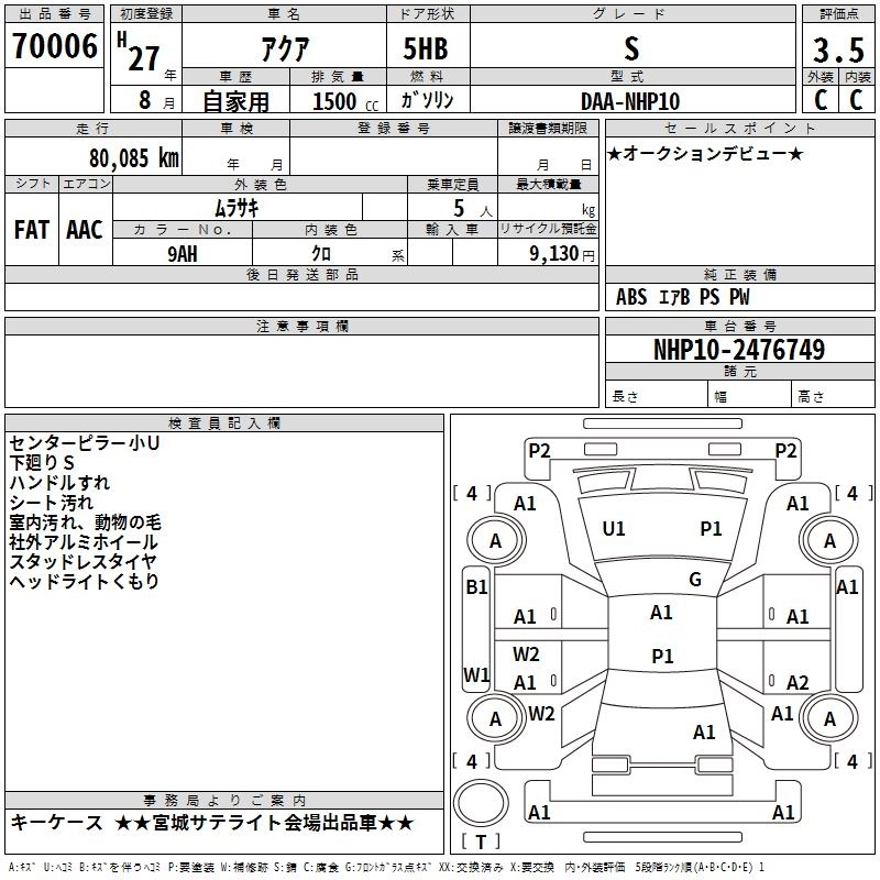 TOYOTA AQUA 2015 г., лот № 70006