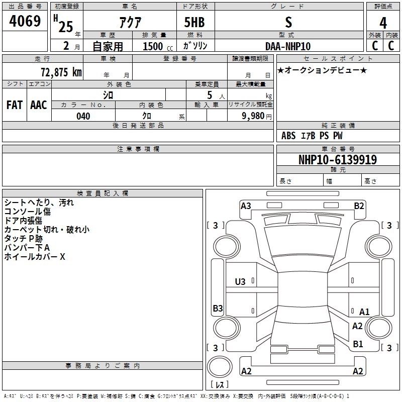 TOYOTA AQUA 2013 г., лот № 4069