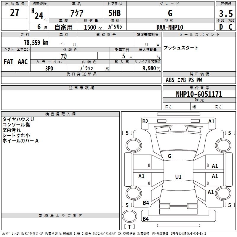 TOYOTA AQUA 2012 г., лот № 27