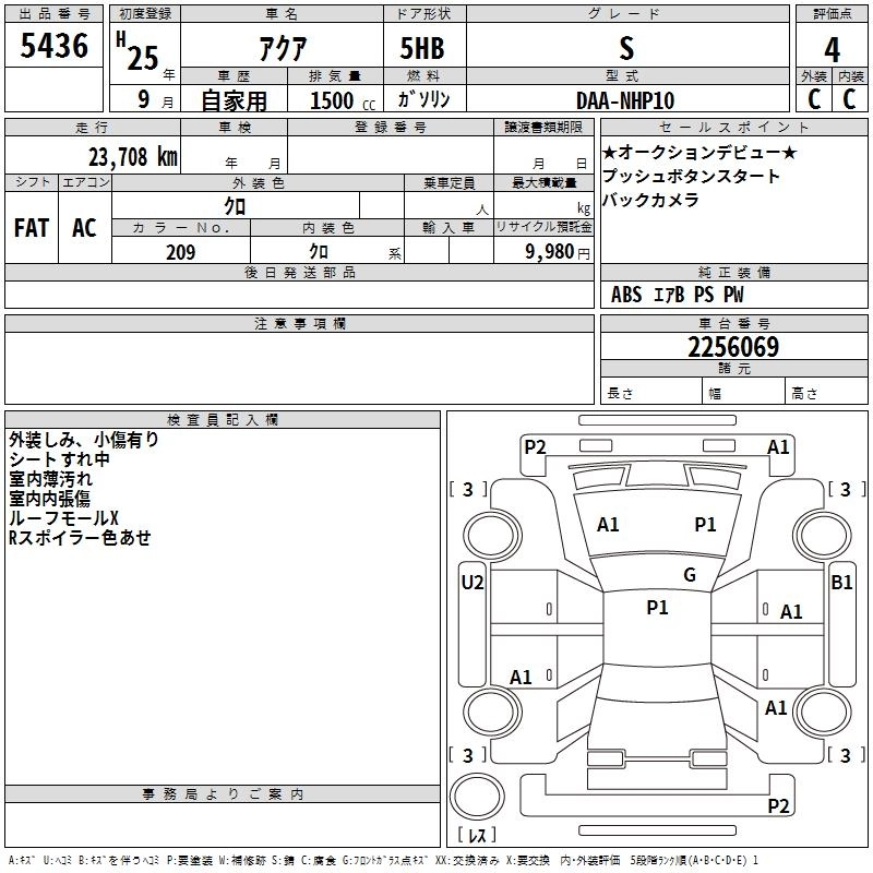 TOYOTA AQUA 2013 г., лот № 5436