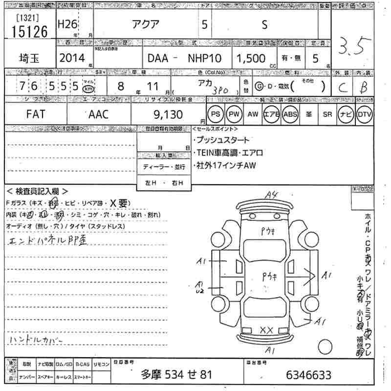 Статус выставлен на аукцион Лот 15126 Аукцион MIRIVE Saitama Дата аукциона 11.03.2026
