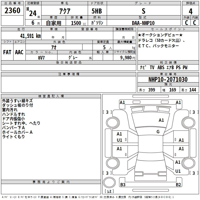 TOYOTA AQUA 2012 г., лот № 2360