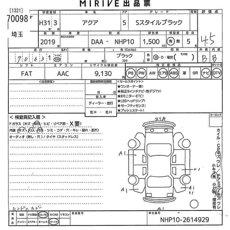 TOYOTA AQUA 2019 г., лот № 70098