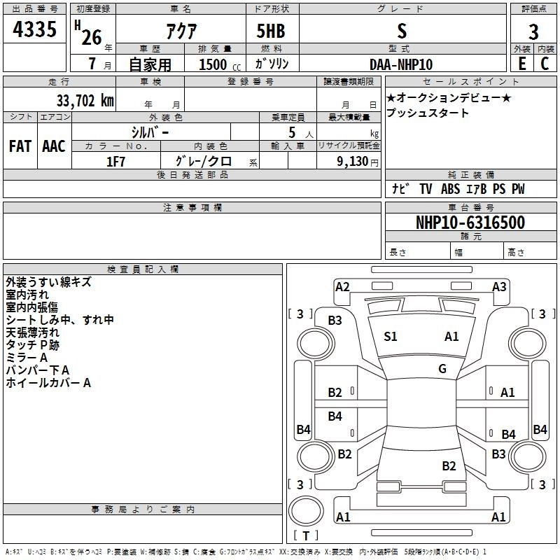 TOYOTA AQUA 2014 г., лот № 4335
