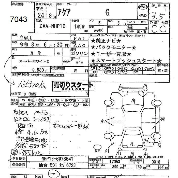 TOYOTA AQUA 2012 г., лот № 7043