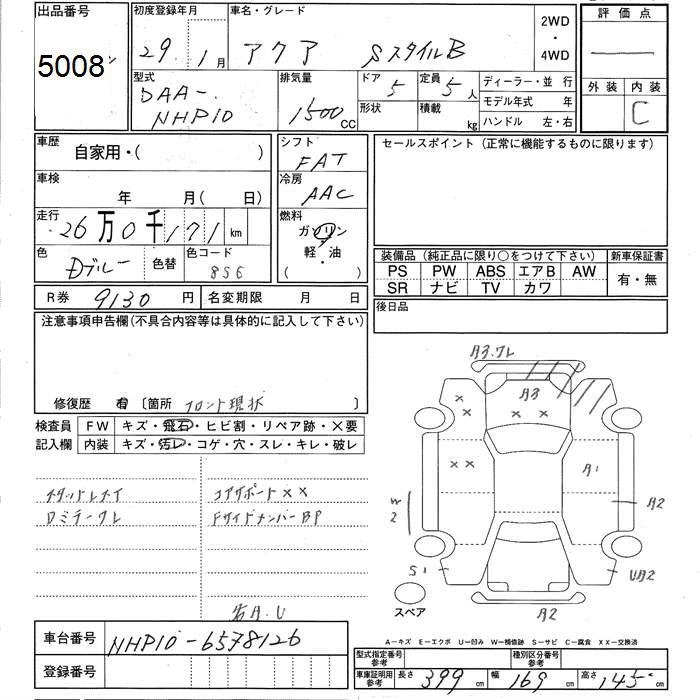 TOYOTA AQUA 2017 г., лот № 5008