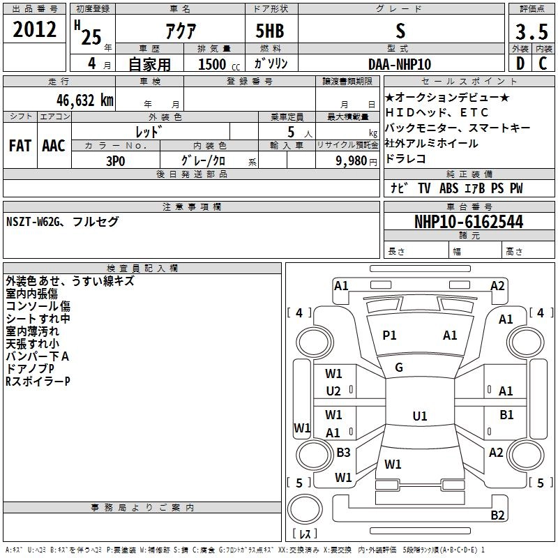 TOYOTA AQUA 2013 г., лот № 2012