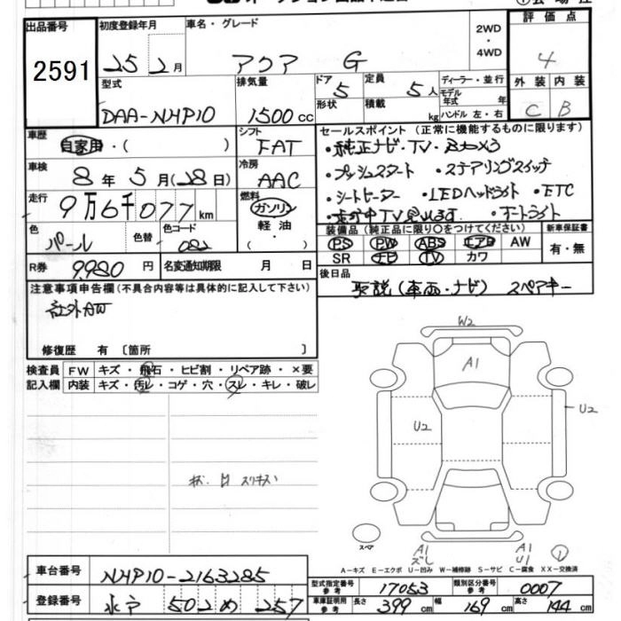 TOYOTA AQUA 2013 г., лот № 2591