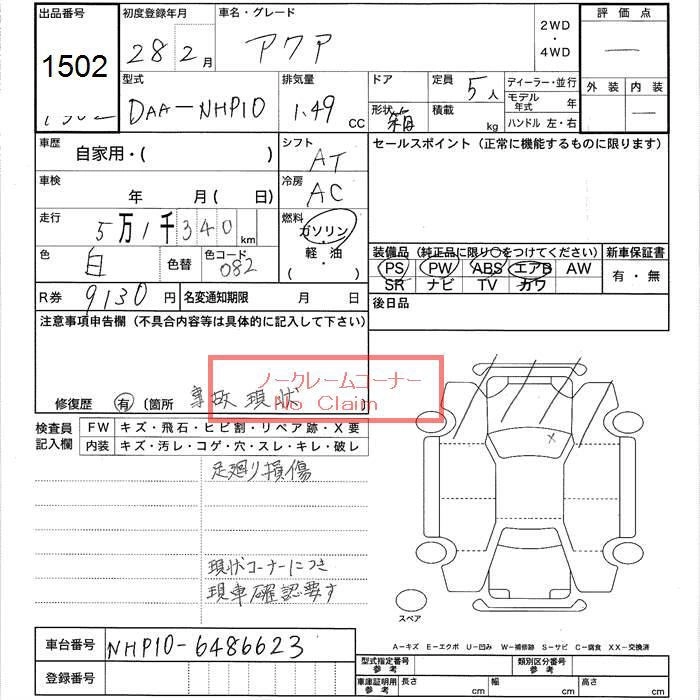TOYOTA AQUA 2016 г., лот № 1502