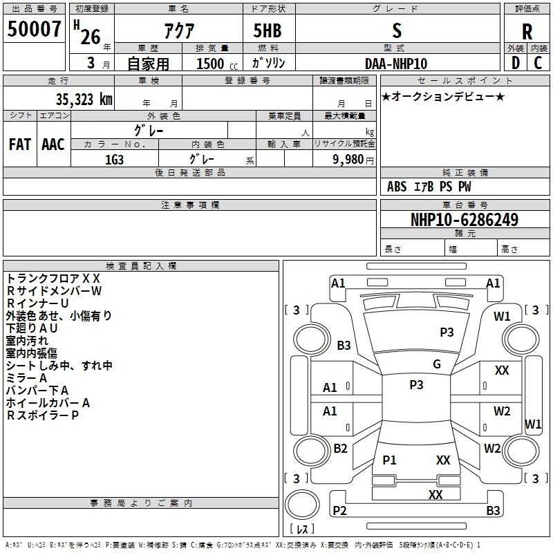 TOYOTA AQUA 2014 г., лот № 50007