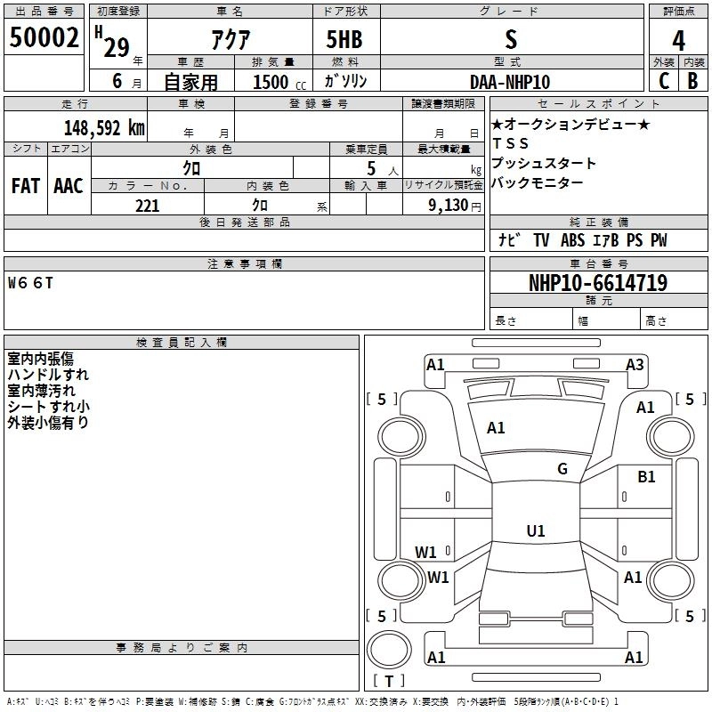 TOYOTA AQUA 2017 г., лот № 50002