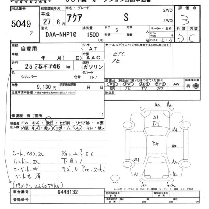 TOYOTA AQUA 2015 г., лот № 5049