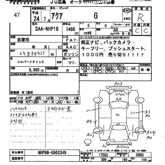 Стартовая цена авто на аукционе 1 000 ¥