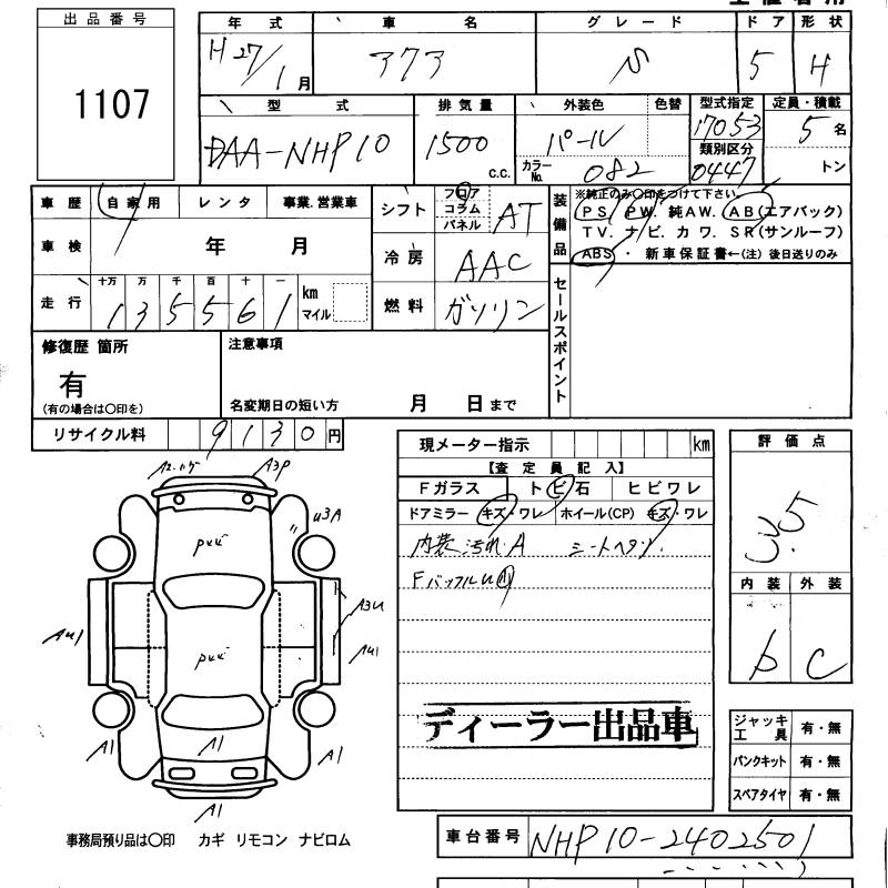 TOYOTA AQUA 2015 г., лот № 1107