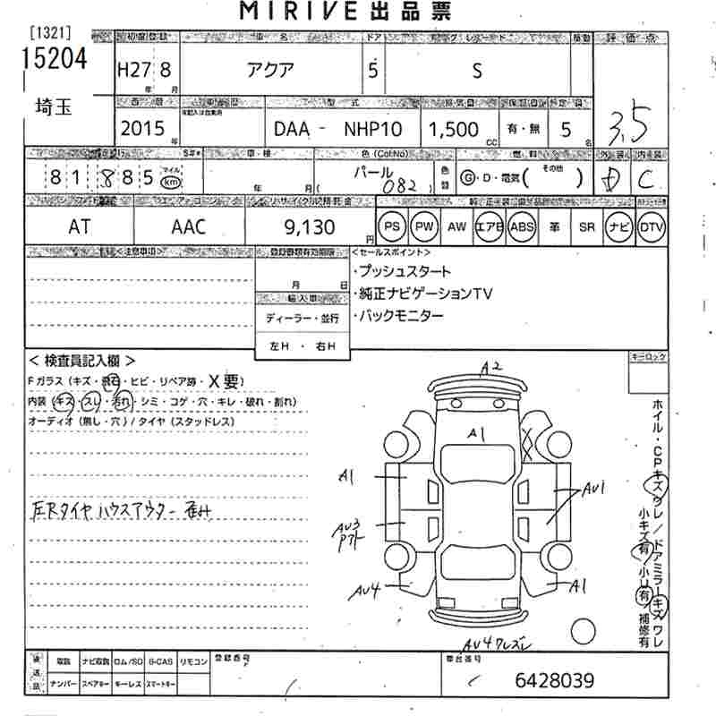 Статус выставлен на аукцион Лот 15204 Аукцион MIRIVE Saitama Дата аукциона 11.03.2026