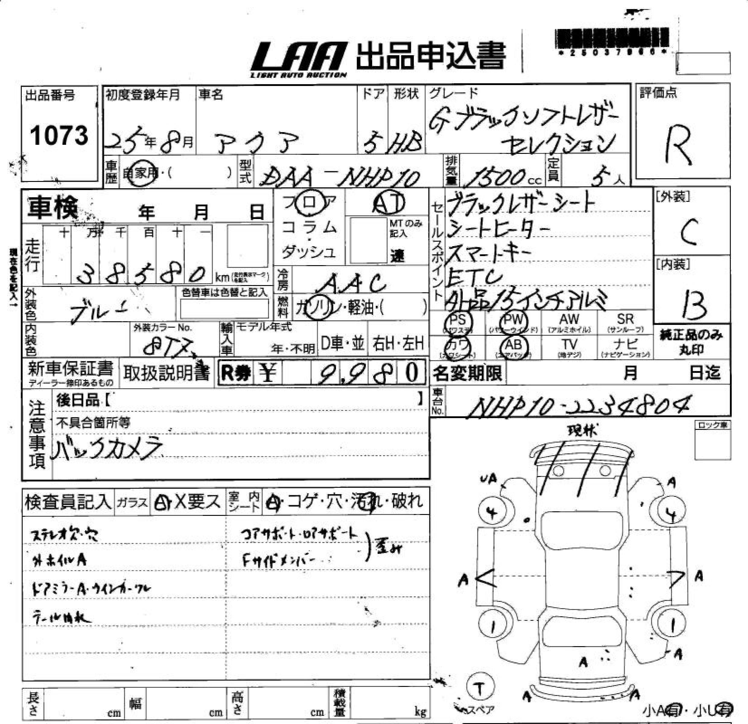 TOYOTA AQUA 2013 г., лот № 1073