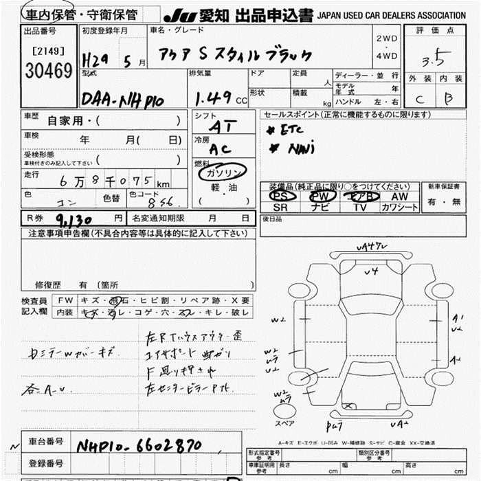 TOYOTA AQUA 2017 г., лот № 30469