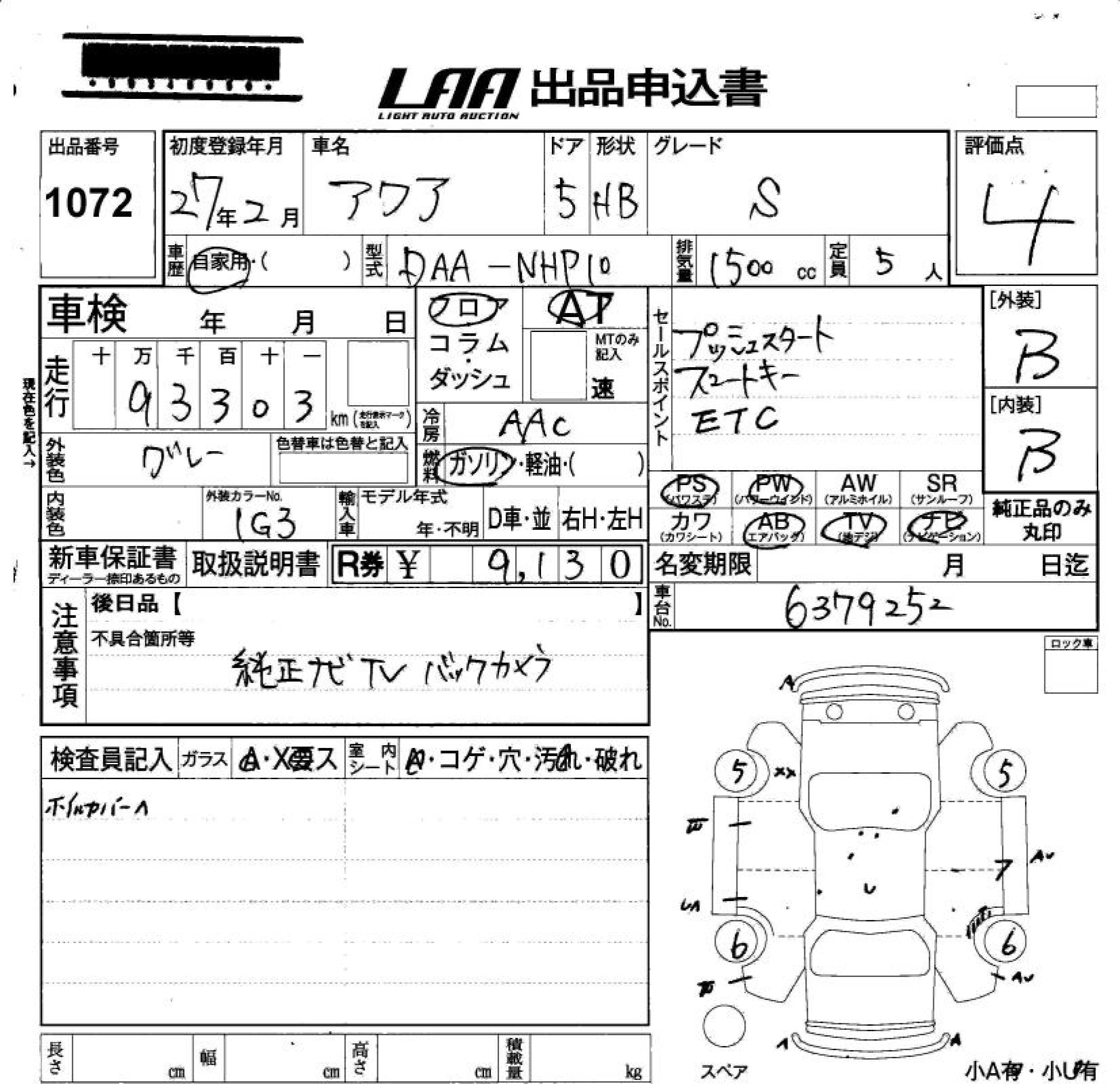 TOYOTA AQUA 2015 г., лот № 1072