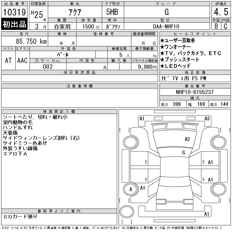 Статус выставлен на аукцион Лот 10319 Аукцион CAA Chubu Дата аукциона 11.03.2026