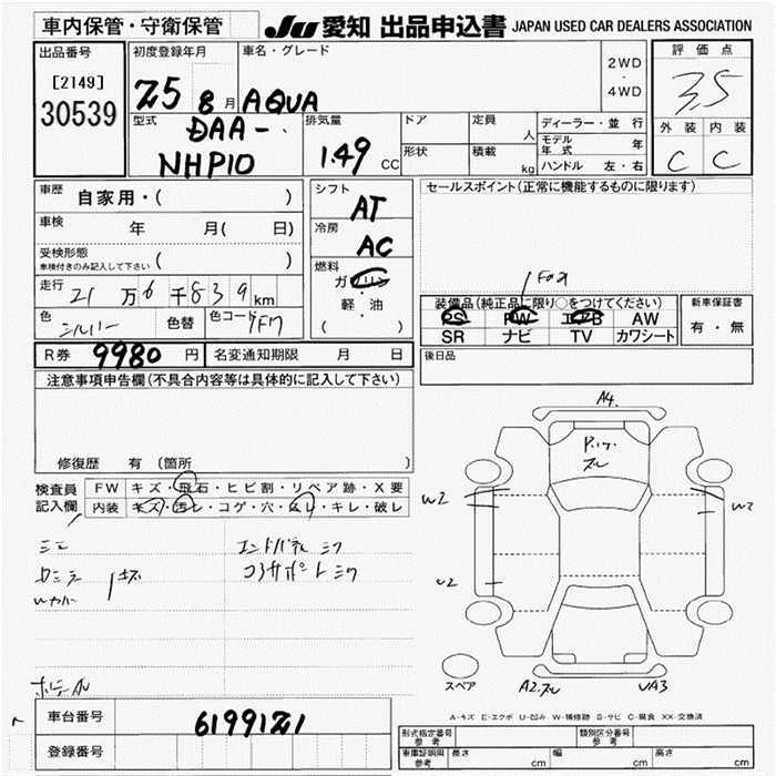 TOYOTA AQUA 2013 г., лот № 30539