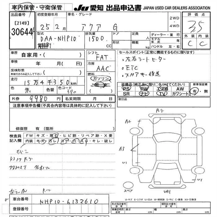 TOYOTA AQUA 2013 г., лот № 30644