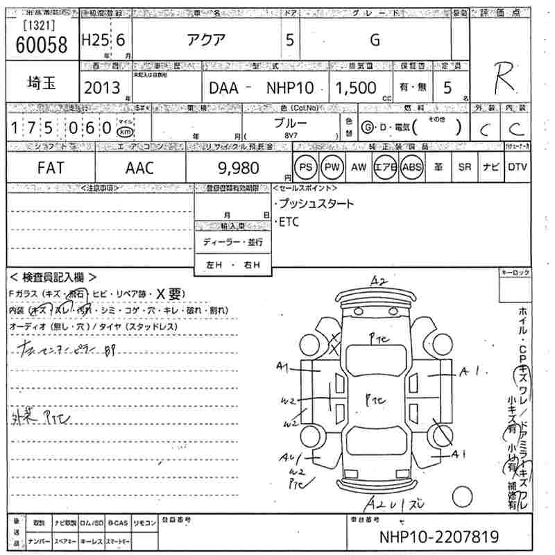 TOYOTA AQUA 2013 г., лот № 60058