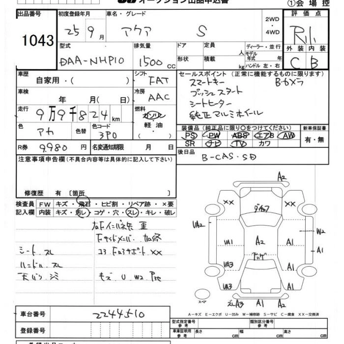 TOYOTA AQUA 2013 г., лот № 1043