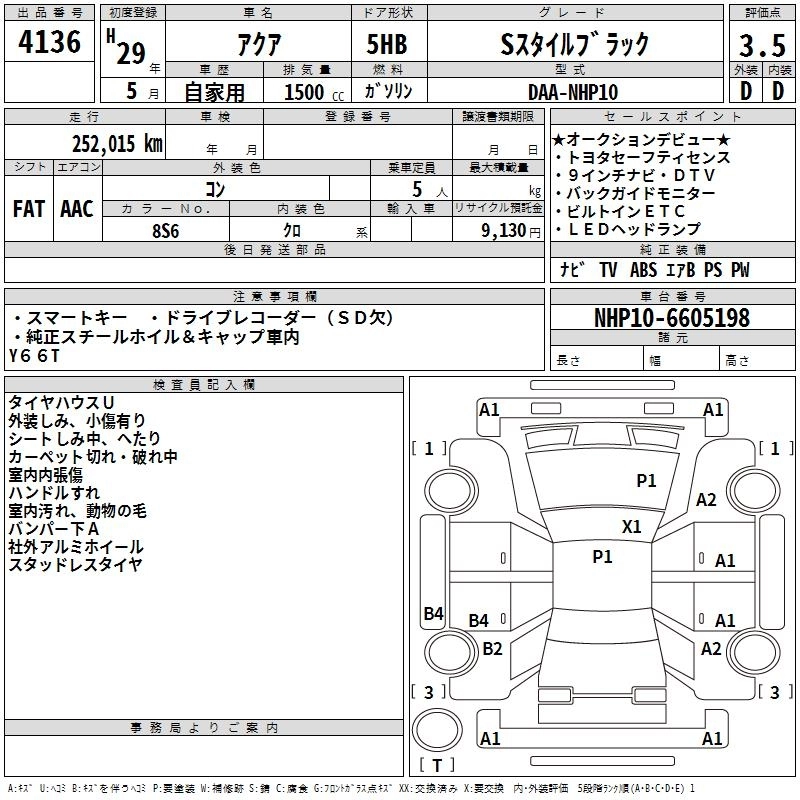 TOYOTA AQUA 2017 г., лот № 4136