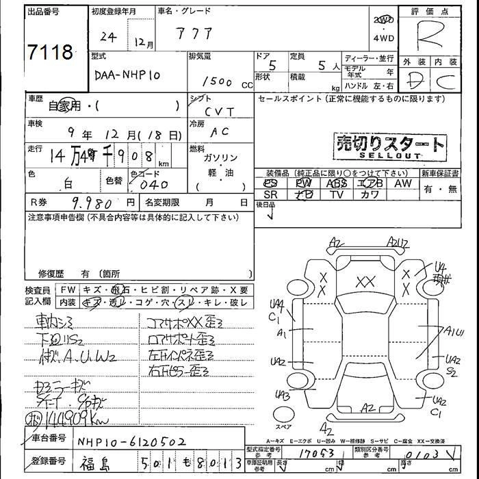 TOYOTA AQUA 2012 г., лот № 7118