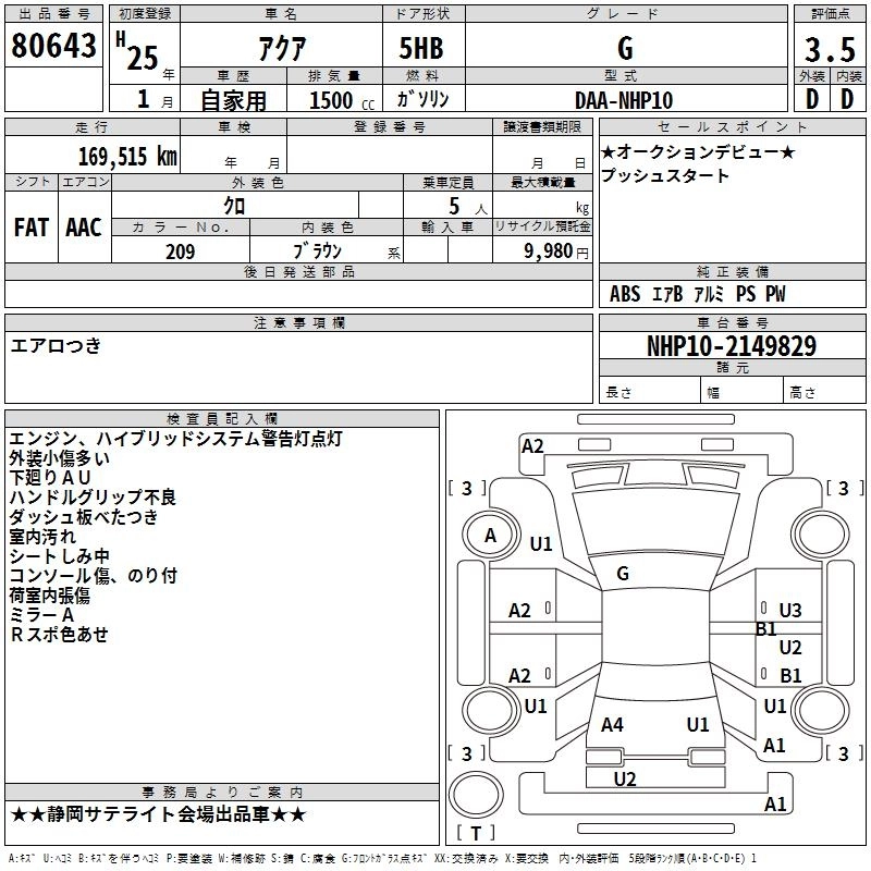 TOYOTA AQUA 2013 г., лот № 80643