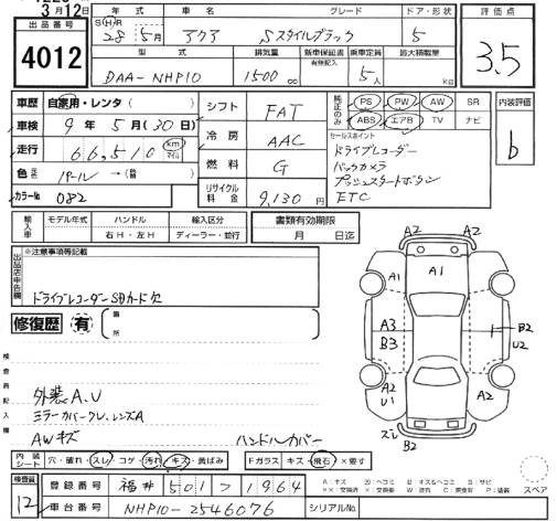 TOYOTA AQUA 2016 г., лот № 4012