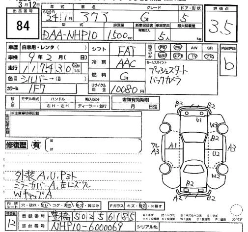 Год выпуска2012 Пробег 117 000 км КузовNHP10 КомплектацияG