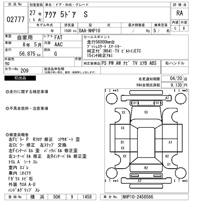 TOYOTA AQUA 2015 г., лот № 2777