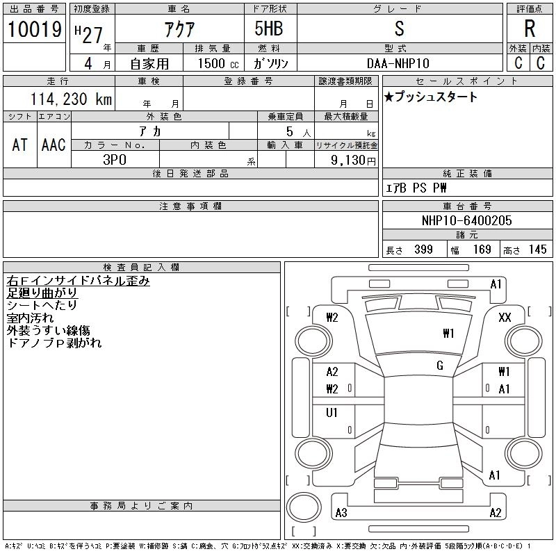 TOYOTA AQUA 2015 г., лот № 10019