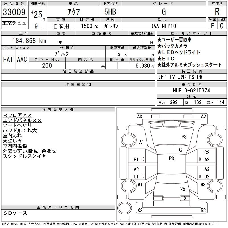 TOYOTA AQUA 2013 г., лот № 33009