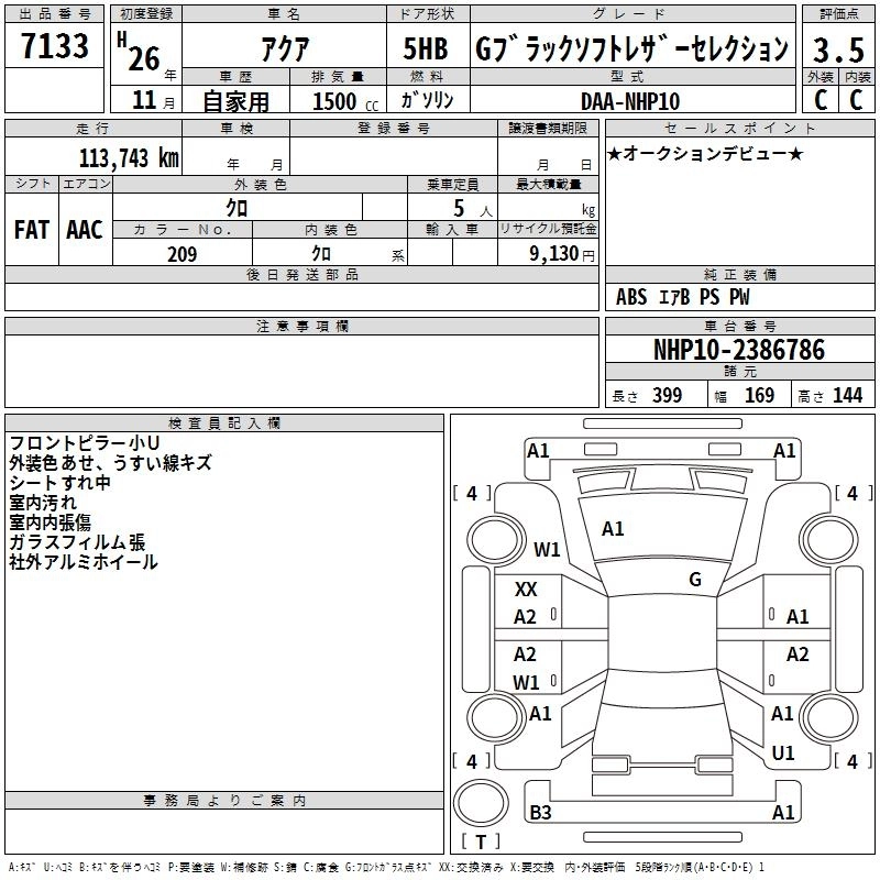 TOYOTA AQUA 2014 г., лот № 7133