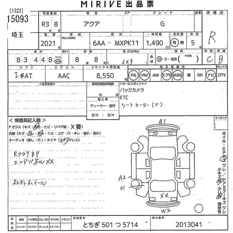 Статус выставлен на аукцион Лот 15093 Аукцион MIRIVE Saitama Дата аукциона 18.03.2026
