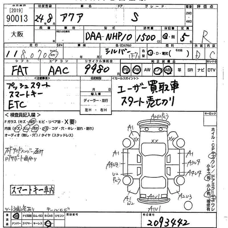TOYOTA AQUA 2012 г., лот № 90013