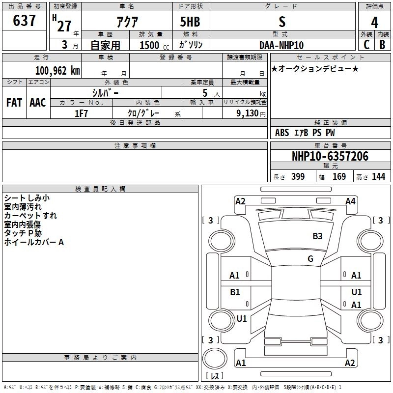 TOYOTA AQUA 2015 г., лот № 637